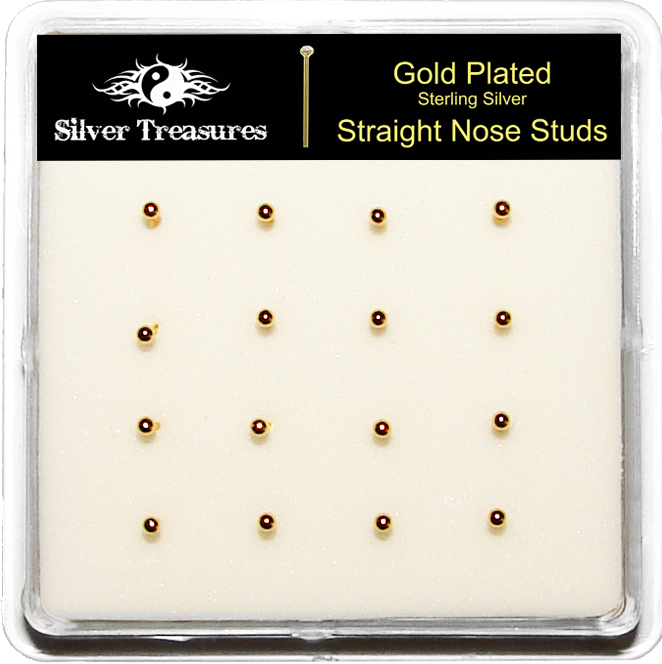 18kt Gold Plated Ball L-Shape Nose Studs, 20-Piece Box
