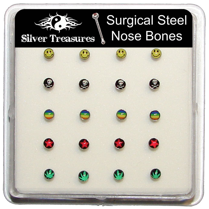 Surgical Steel 316L Assorted Picture Nose Bones, 20-Piece Box